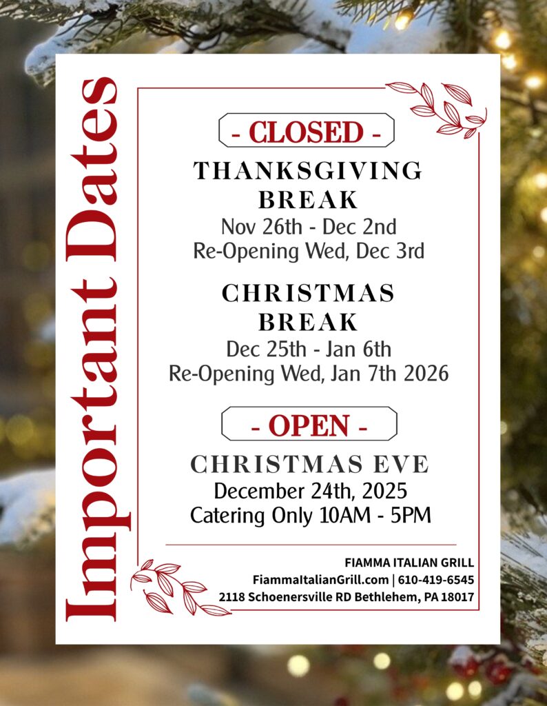 From crowd-pleasing appetizers to savory entrées, you’re sure to leave Fiamma Italian Grill with a full stomach and a smile on your face. So, be sure to come visit our Bethlehem location and try some today!